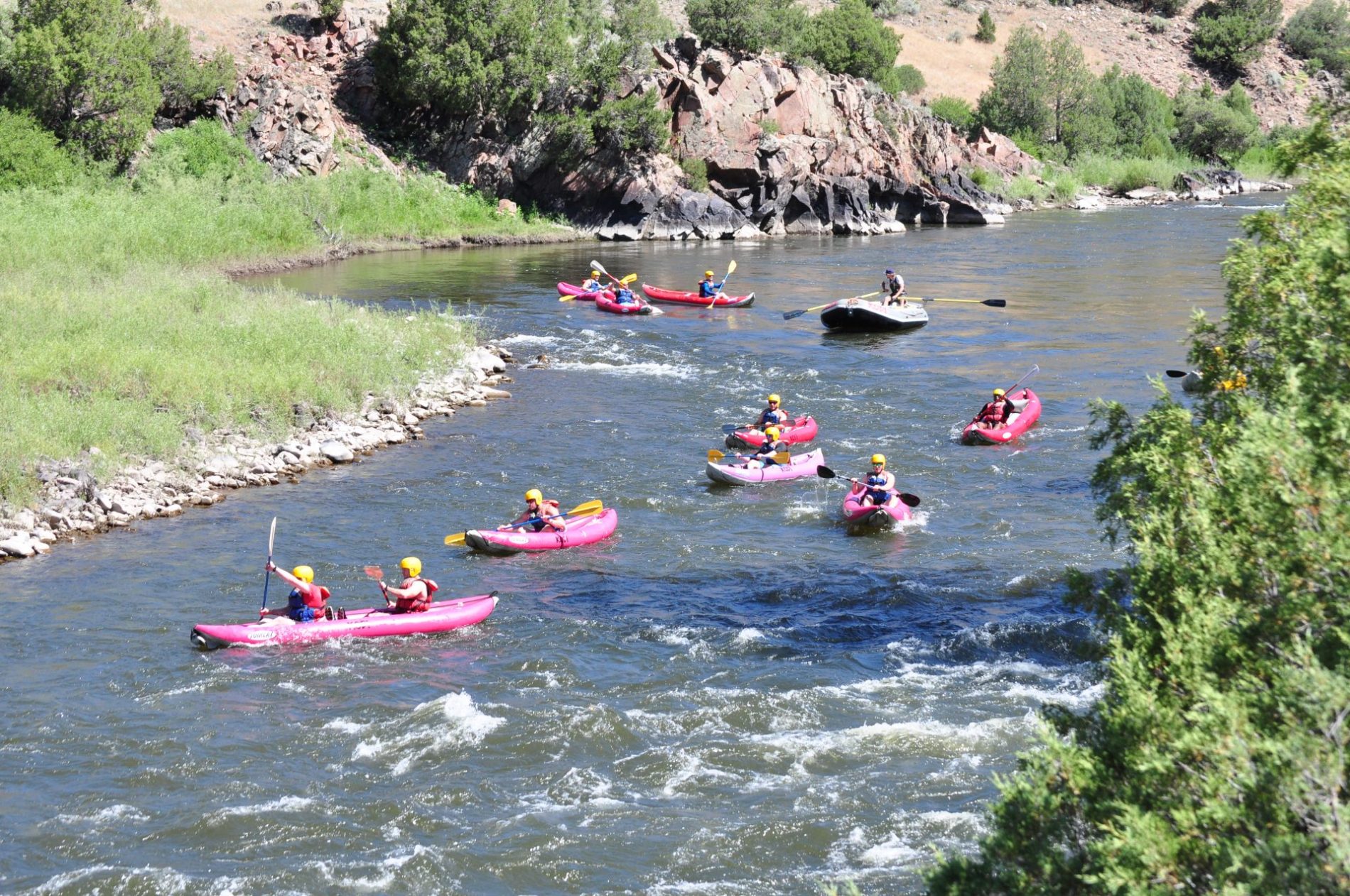 Go solo or paddle with a friend in an inflatable one or two-person kayak, also known as a duckie. Big Bend, with its calm water and mild rapids, is the perfect section of the Arkansas River to maneuver your own boat.